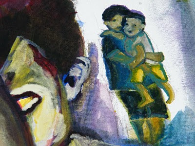 In the first painting I did from this photo I left these two out. I was worried about painting them in because they are so small and the detail in the photo is quite bad. But I did it and I love how they came out :) And, while painting, I realised that this was a photo I took. And I realised that baby Thinh is being held by that boy but has twisted himself around and is looking at me.
